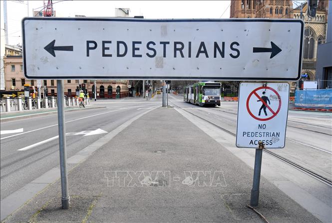 Cảnh vắng vẻ tại một tuyến phố ở Melbourne, bang Victoria, Australia khi chính quyền địa phương áp dụng lệnh hạn chế mới nhằm ngăn chặn sự lây lan của dịch COVID-19.
