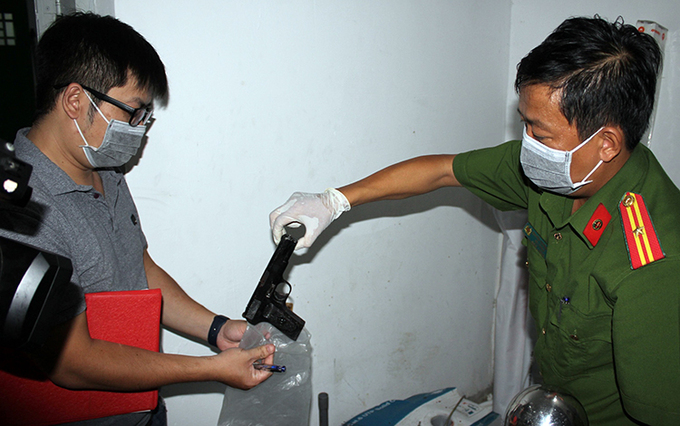 Cơ quan điều tra thu giữ khẩu súng quân dụng. Ảnh: Công an cung cấp.