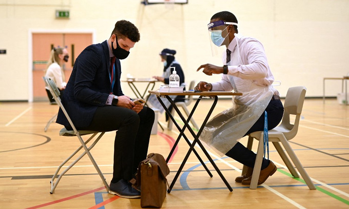 Giáo viên chờ lấy mẫu xét nghiệm nCoV tại Anh hôm 4/3. Ảnh: AFP.