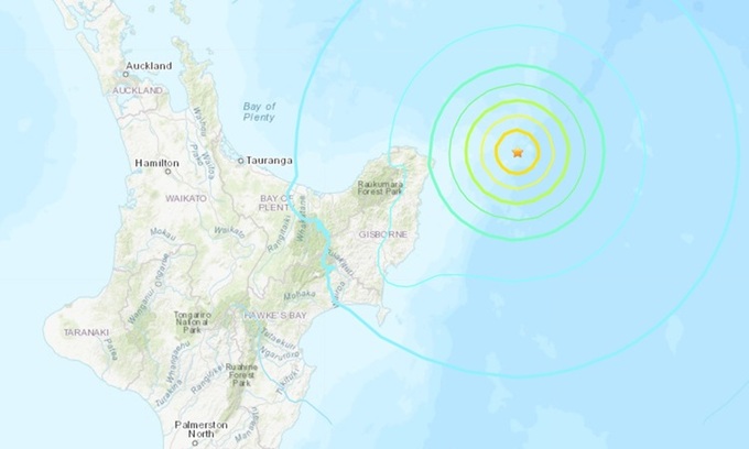 Cơ quan Khảo sát Địa chất Mỹ (USGS) cho biết động đất xảy ra cách thành phố Gisborne 180 km về phía đông bắc, vào lúc 2h27 ngày 5/3 (20h27 ngày 4/3 giờ Hà Nội) với tâm chấn ở độ sâu 10km. Những người sống gần bờ biển từ Cape Runaway đến Vịnh Tolaga đã được yêu cầu sơ tán.