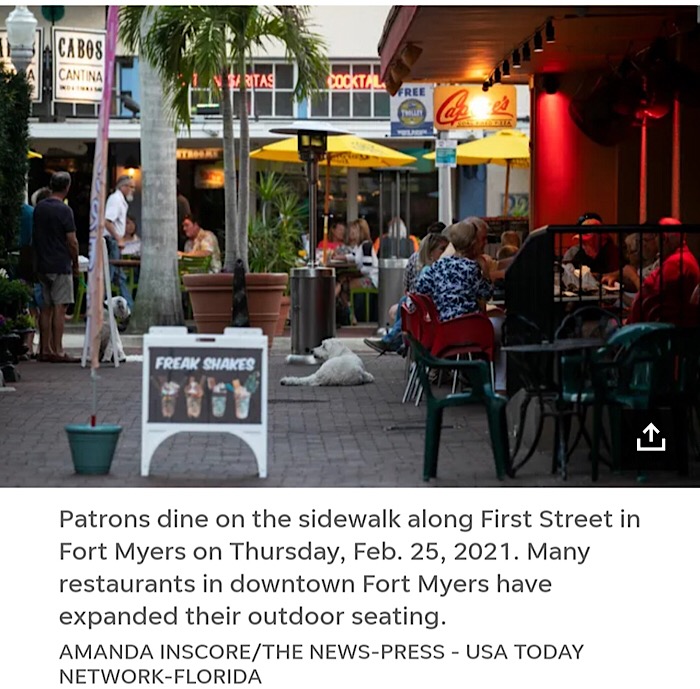 Điều này cũng đúng tại nhà hàng Fathoms and Gather ở Cape Coral. Fathoms and Gather đã chứng kiến ​​sự gia tăng doanh thu, Voison chủ nhà hàng cho biết; tăng nhẹ, khoảng 10%. Cô nghĩ đã có một làn sóng mới đến khu vực này vì các nhà hàng mở và nền kinh tế ít bị cản trở hơn. Voisin cho biết các nhóm của cô đã làm mọi cách để khách hàng cảm thấy thoải mái.