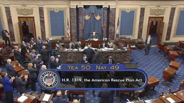Sau 25 giờ tranh luận căng thẳng, Thượng viện Mỹ đã thông qua dự luật về gói cứu trợ 1.900 tỷ USD.
