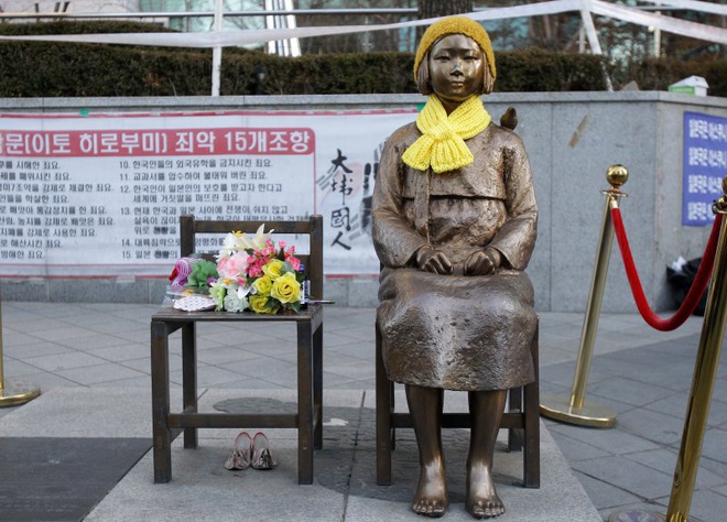 Bức tượng "phụ nữ mua vui" phía trước Đại sứ quán Nhật Bản ở Seoul. Ảnh: Getty.