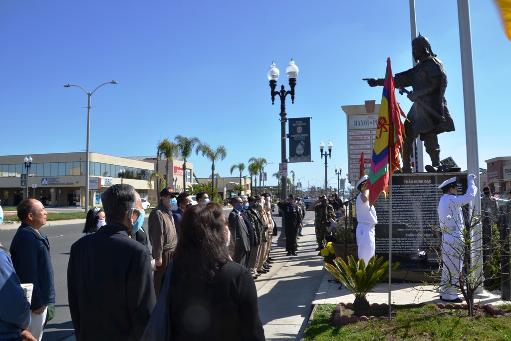 Các thành phần tham dự lễ chào cờ đầu tháng 3, 2021 tại Tượng Đài Đức Trần Hưng Đạo. (Thanh Phong)
