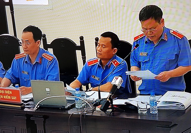 Đại diện Viện Kiểm sát đọc bản luận tội các bị cáo.