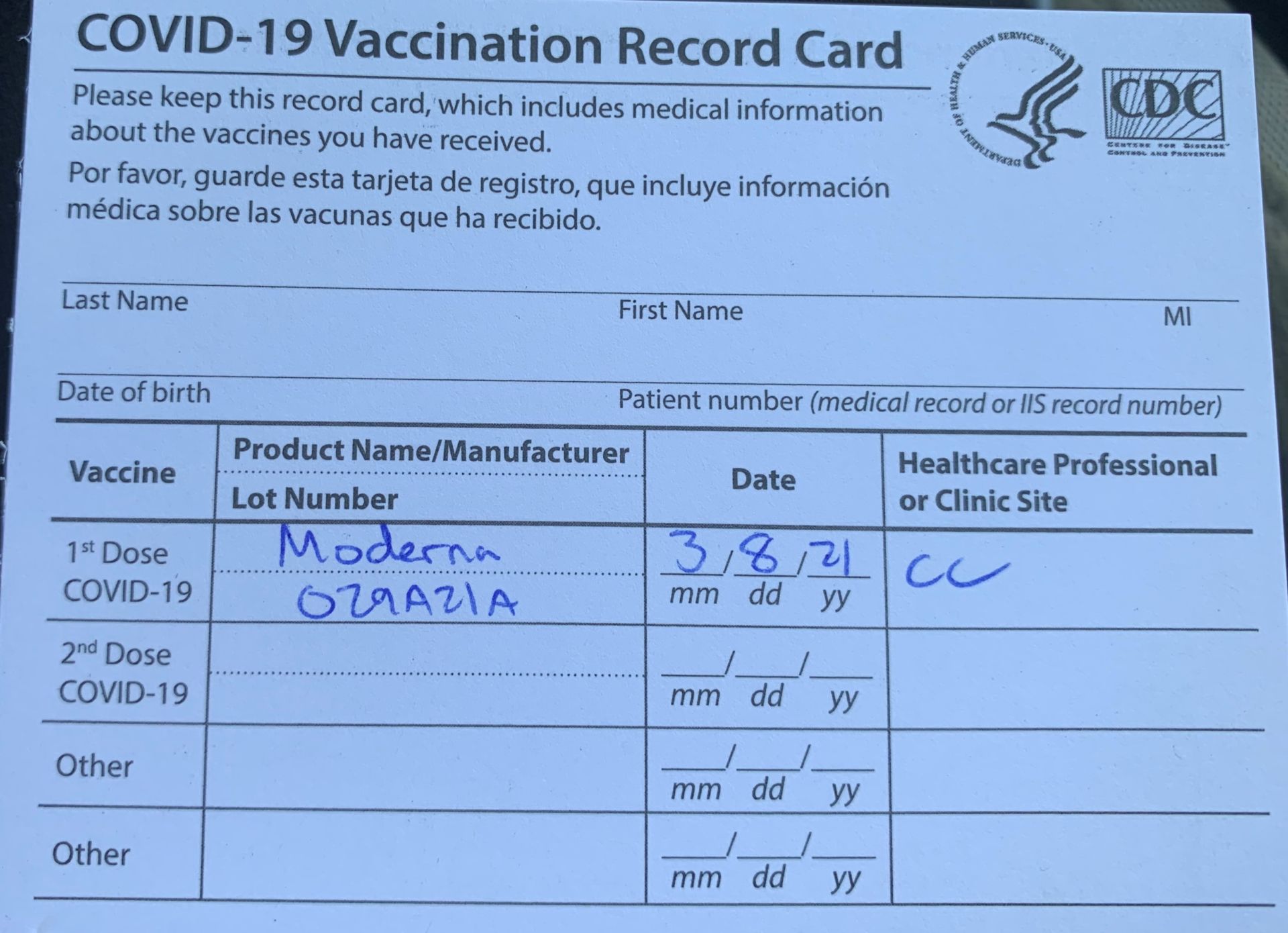 V́ tôi chích thuốc của Moderna, nên sau 28 ngày mới chích mũi thứ hai.