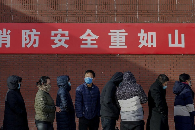 Người dân xếp hàng chờ xét nghiệm Covid-19 tại Bắc Kinh. Ảnh: AFP