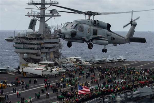 Một chiếc trực thăng MH-60R Sea Hawk hạ cánh trên boong tàu USS Nimitz. Ảnh: Hải quân Mỹ