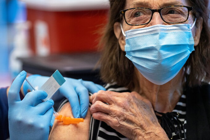 Barbara Schmalenberger, 86 tuổi, sinh sống tại Hilliard, Ohio, Mỹ, nhận liều vaccine Johnson & Johnson hôm 8/3. Ảnh: Reuters