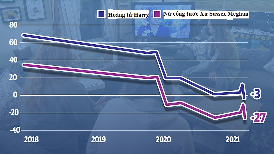 Tuy nhiên, không chỉ có Hoàng gia Anh chịu ảnh hưởng. Dựa trên khảo sát của YouGov ngày 12/3 tại Anh, tỷ lệ ủng hộ Hoàng tử Harry và vợ Meghan đã xuống mức thấp nhất từ trước đến nay. Trong 1.664 người được hỏi, có tới 48% bày tỏ thái độ tiêu cực với Hoàng tử Harry, còn ủng hộ là 45%.