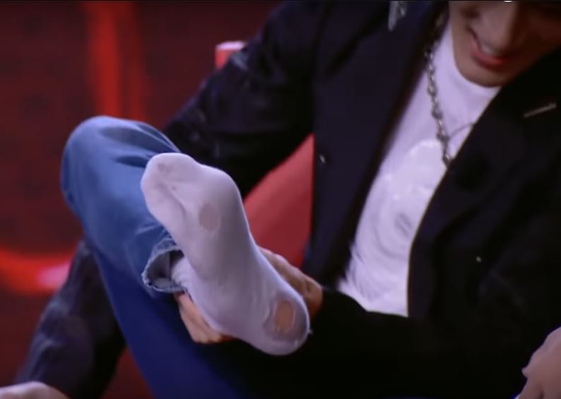 Vương Lực Hoành từng gây bất ngờ khi sử dụng những đôi tất sờn rách.