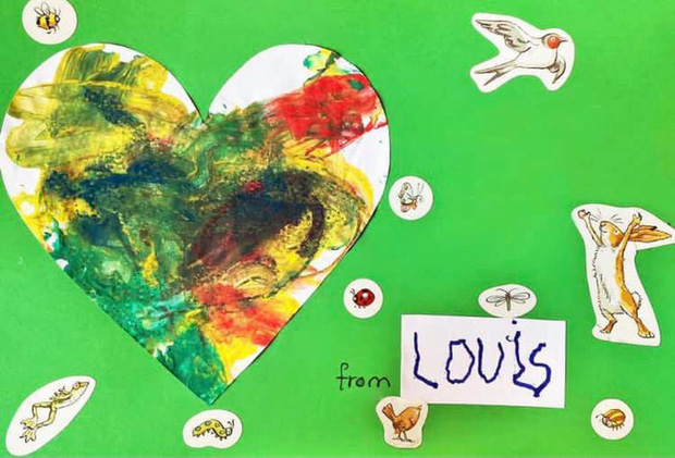 Những tấm thiệp được đăng tải bởi tài khoản Instagram chính thức của Cung điện Kensington cùng với thông điệp ý nghĩa, động viên tinh thần mọi người giữa đại dịch Covid-19 khiến những người thân yêu phải xa cách nhau trong ngày đặc biệt năm nay. Những tấm thiệp của Hoàng tử George, Công chúa Charlotte và Hoàng tử Louis được trang trí bằng hoa, hình trái tim và những hình vẽ đáng yêu khác.