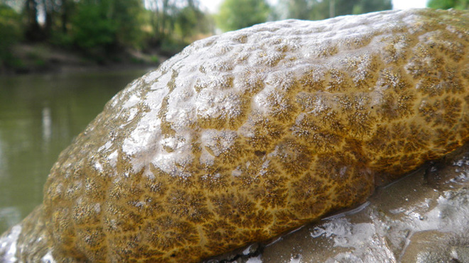 Sinh vật lạ có ngoại hình nhiều nếp nhăn giống bộ não người, mềm mại, dẻo sền sệt. Theo các chuyên gia, sinh vật lạ có tên khoa học là Pectinatella magnifica, với tập hợp hàng trăm sinh vật bé nhỏ.