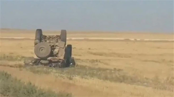 Xe thiết giáp Mỹ bị lật khi va chạm với xe bọc thép Nga ở Syria.