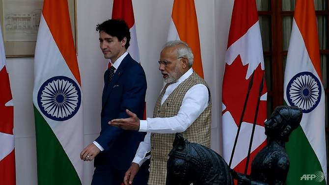 Thủ tướng Canada Justin Trudeau (trái) và Thủ tướng Ấn Độ Narendra Modi. Ảnh: AFP