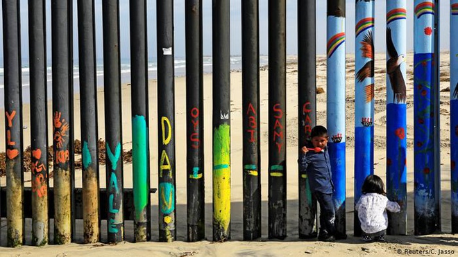 Trẻ em chơi đùa gần bức tường biên giới giữa Mỹ và Mexico. Ảnh: Reuters.