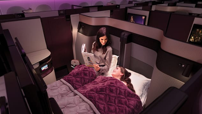 Hãng Hàng không Quốc gia Qatar đã cải tiến hạng thương gia với hệ thống Qsuite trước đây, biến không gian vốn chung, tạo thành những căn phòng có cửa riêng, không gian rộng rãi, màn hình HD và nội thất sang trọng. Nếu bạn book hai chiếc ghế cạnh nhau ở hàng giữa, tiếp viên sẽ bỏ đi bức tường ngăn để tạo thành một giường đôi. Còn trong trường hợp book 4 chỗ, bạn sẽ được một không gian riêng tư rộng rãi gấp bốn lần.