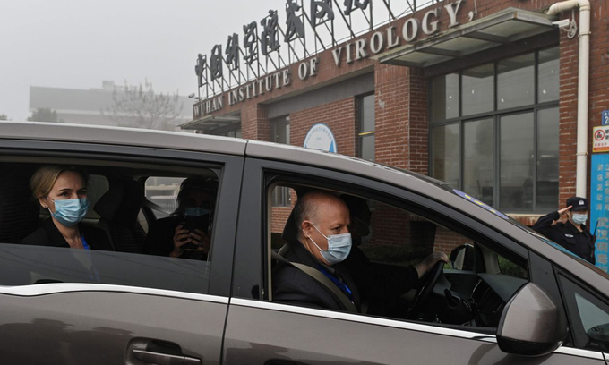 Thành viên nhóm điều tra WHO tới thăm Viện Virus học Vũ Hán hôm 3/2. Ảnh: AFP.