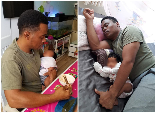 Làm bố ở tuổi ngũ tuần nhưng anh chàng này vẫn không hề ngần ngại. (Ảnh: Chụp màn hình)