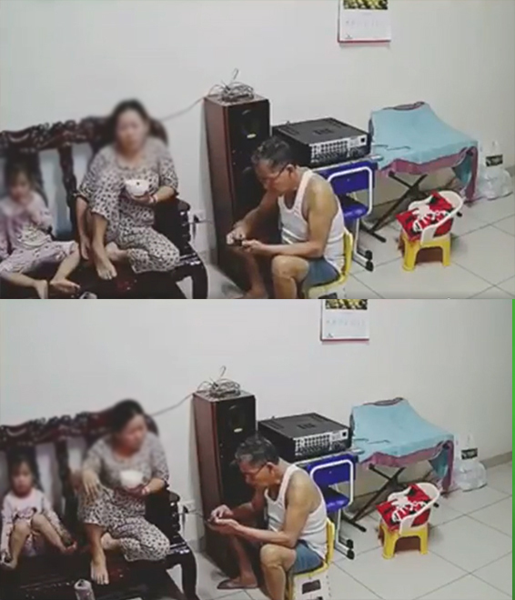 Ông T. gục xuống nhưng người nhà không hay biết. (Ảnh: Chụp màn hình)