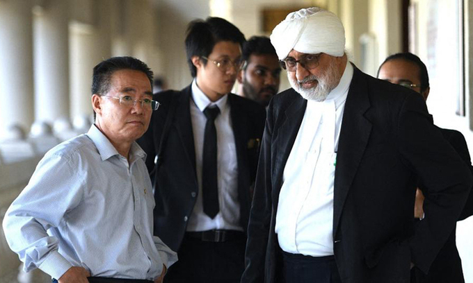Tham tán Đại sứ quán Triều Tiên Kim Yu-song (trái) và Jagjit Singh, luật sư bào chữa của Mun Chol-myong tại tòa án ở Kuala Lumpur, Malaysia năm 2019. Ảnh: AFP.