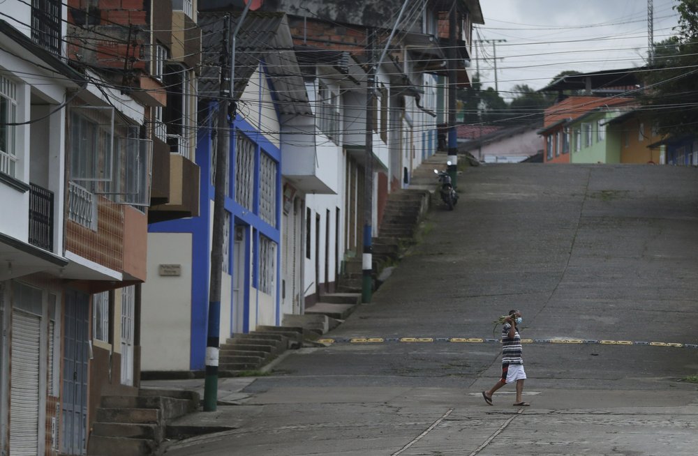 Người dân đi bộ trên một con phố ở Campohermoso, Colombia ngày 18/3. Ảnh: AP