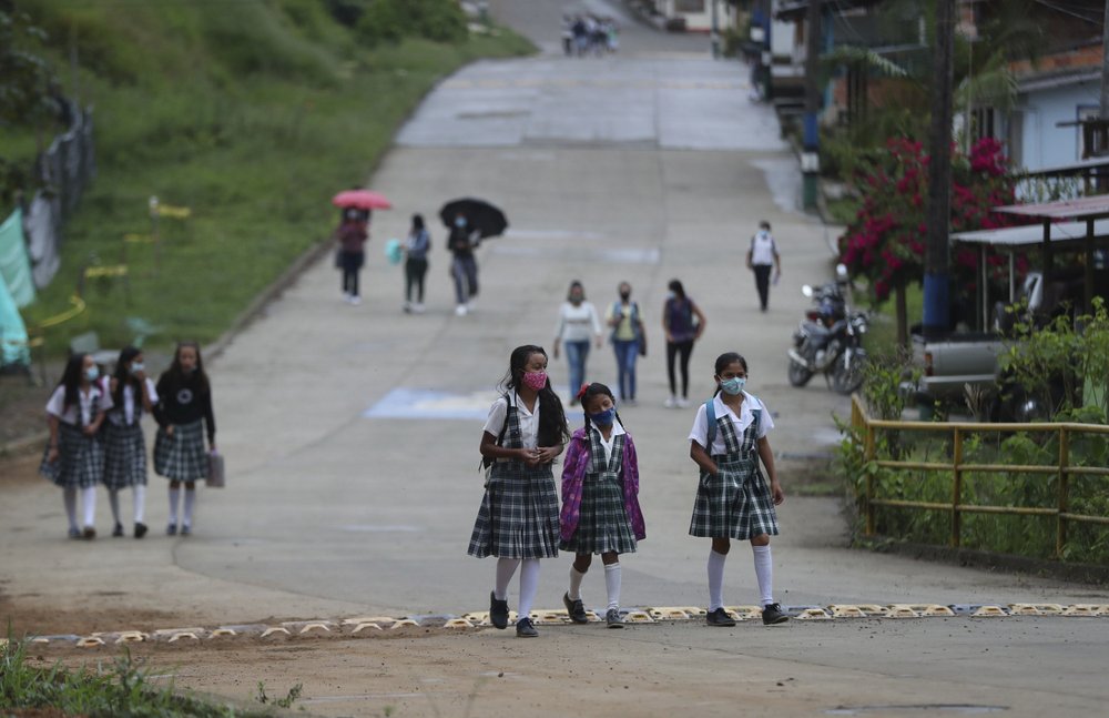 Học sinh đi bộ đến một ngôi trường mở duy nhất ở Campohermoso, Colombia. Ảnh