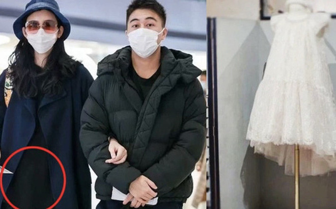 Mặc đầm rộng thùng thình, cô liên tục đi chậm, chỉnh trang lại trang phục giống như sợ lộ bụng bầu. Hà Du Quân đi phía trước, đeo khẩu trang kín mít, dường như không muốn bị nhận ra giữa chốn đông người.