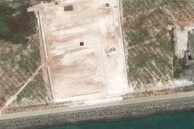 Theo ảnh vệ tinh mới của Maxar, một vệt hình tròn ở góc của mảnh đất cho thấy Trung Quốc có thể đã xây trái phép một tòa tháp hoặc vòm che radar ở đó.