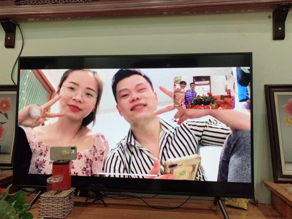 Old  Default Cặp đôi trẻ làm đám hỏi trực tuyến, họ hàng hai bên nhìn cô dâu chú rể qua Tivi