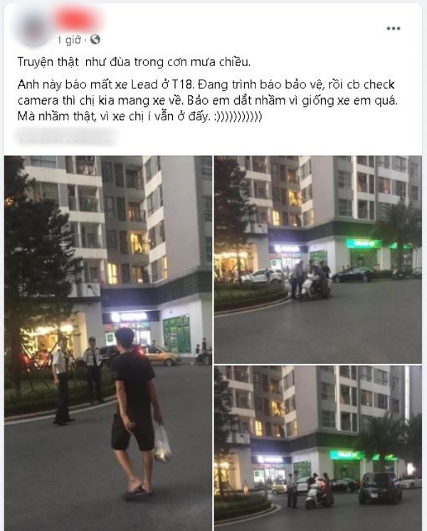 Thế nhưng, điểm đáng chú là nhất là khi chàng trai đang trình báo bảo vệ để chuẩn bị check camera thì một người phụ nữ bất ngờ mang về về. Lý do khiến ai nấy đều “cười ra nước mắt” vì chị gái này thấy chiếc xe Lead của anh chàng giống y sì xe mình nên đã chủ quan biển số, mà cứ thế dắt đi.