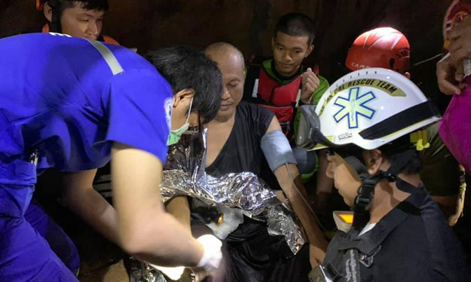 Một trong những nhân viên cứu hộ sau đó xác nhận nhà sư đã ra khỏi hang và được sơ cứu. 17 thợ lặn đã tham gia nỗ lực tìm kiếm và giải cứu nhà sư.