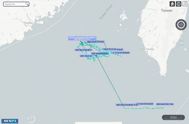 Cụ thể, vào sáng sớm ngày 7/4, một chiếc trinh sát cơ EP-3E của quân đội Mỹ bay qua eo biển Bashi, hướng về phía bờ biển Trung Quốc đại lục để tiến hành do thám dọc bờ biển Trung Quốc và khu vực Tây Nam Đài Loan.
