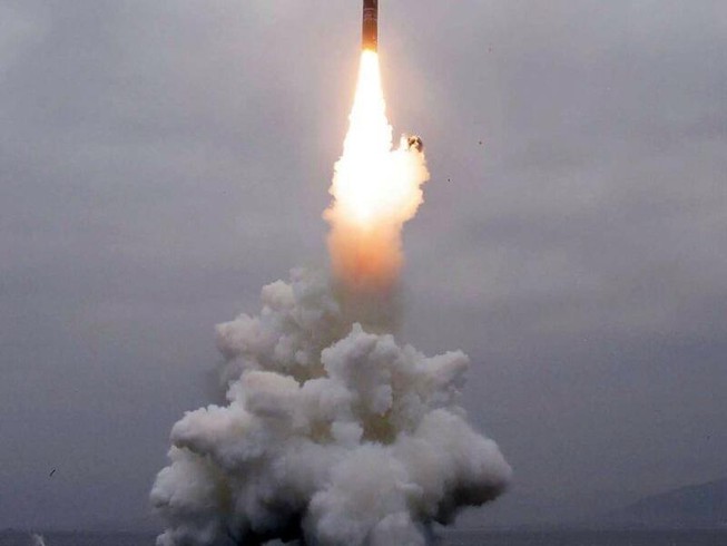Tên lửa đạn đạo phóng từ tàu ngầm của Triều Tiên. Ảnh: AFP