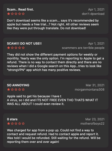 Một bình luận khác trên App Store cũng khẳng định đây là ứng dụng lừa đảo. "Tôi bị trừ tiền sau khi nhấn vào pop-up của chúng trên Safari. Không tìm thấy thông tin liên hệ để được hoàn tiền. Tôi đã phản ánh và nhờ Apple xử lý".