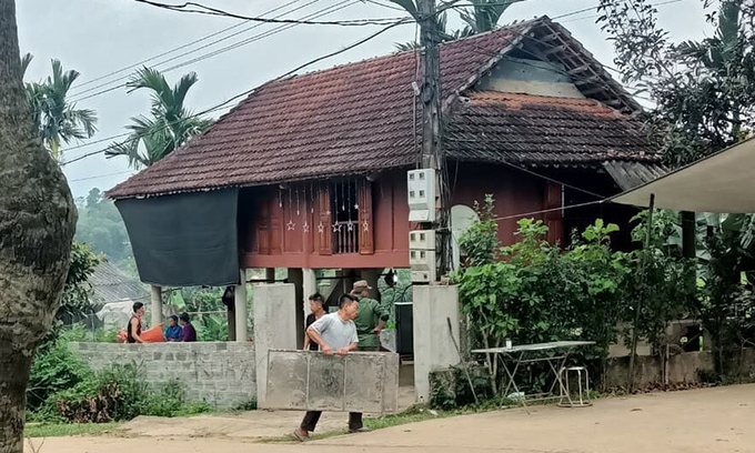 Nghe tiếng la hét vọng ra từ nhà sàn của gia đình Trung ở thôn Hồ Quang, xã Điền Quang, huyện Bá Thước, hàng xóm chạy đến, phát hiện thi thể vợ Trung với nhiều vết đâm chém.