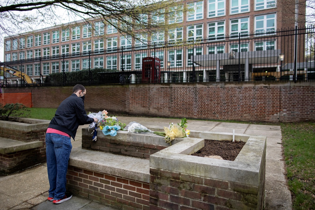 Hoa được đặt bên ngoài đại sứ quán Anh ở Washington DC sau sự qua đời của vị Hoàng thân.
