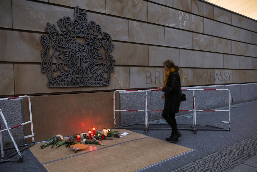 Người dân Đức đặt hoa và nến bên ngoài đại sứ quán Anh tại Berlin để tưởng niệm Hoàng thân Philip.