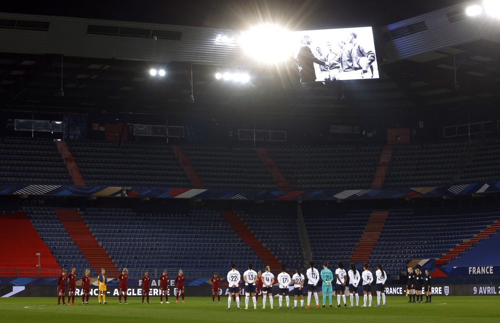 Các nữ cầu thủ Anh và Pháp cũng dành một phút mặc niệm trước trận đấu để tưởng nhớ Hoàng thân Philip.