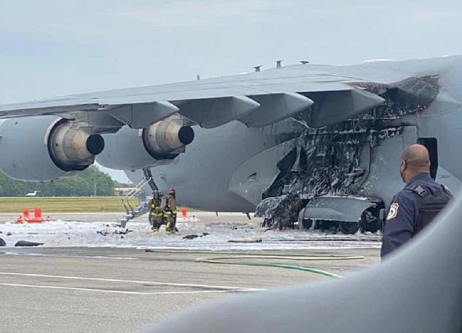 Siêu máy bay C-17 của Không quân Mỹ bốc cháy ngùn ngụt