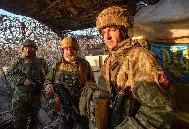 Lực lượng của chính phủ Ukraine tại giới tuyến ngăn cách với khu vực do phe ly khai kiểm soát ở phía đông nước này. Ảnh: Reuters.