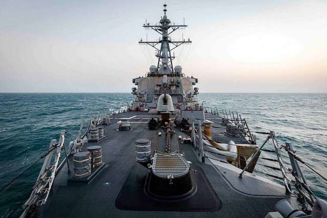 Tàu chiến Mỹ đi qua eo biển Đài Loan (Ảnh: SCMP).