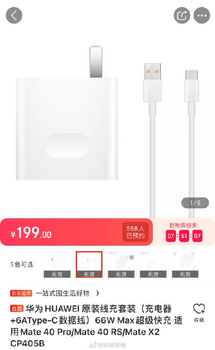 Củ sạc bị cắt giảm được Huawei bán với giá 199 nhân dân tệ (700 nghìn đồng).