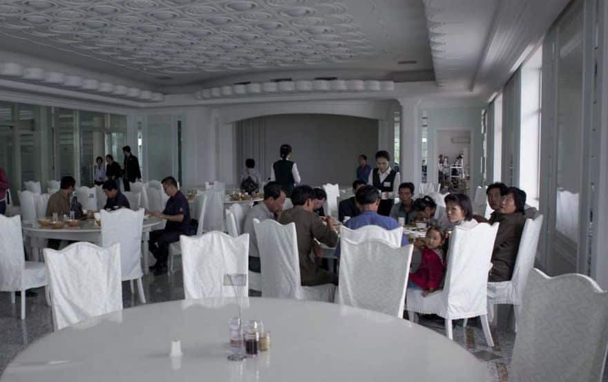 #26. Các nhà hàng mới sang trọng được mở dọc theo sông Taedong ở trung tâm mới của B́nh Nhưỡng. Chỉ có người giàu mới đủ tiền chi trả cho việc ăn uống ở đó. Tôi đă ăn cá tầm ở đó, nó thực sự rất ngon.