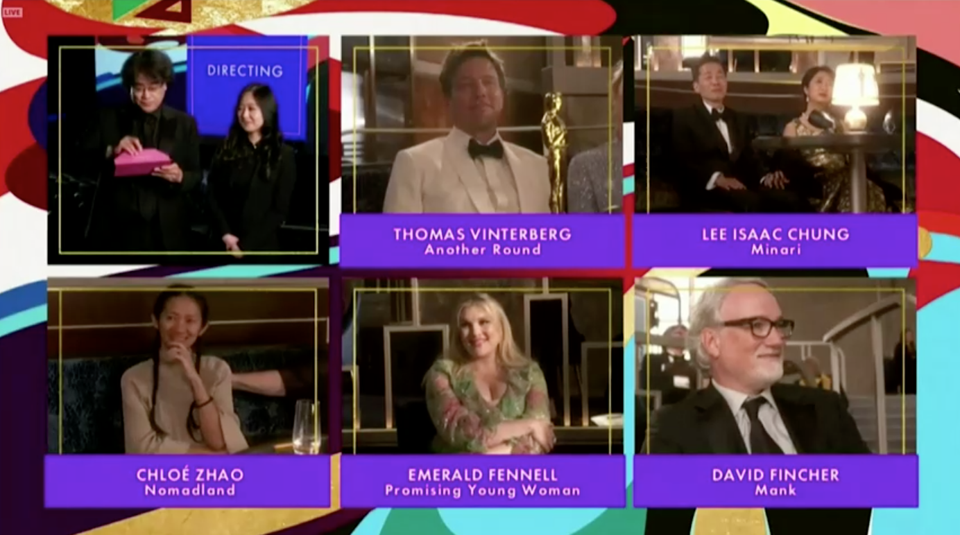 Nữ đạo diễn gốc Hoa Lục Chloe Zhao đã giành được giải đạo diễn xuất sắc nhất cho bộ phim “Nomadland” của Searchlight Pictures, giúp bà trở thành người phụ nữ châu Á đầu tiên và là người phụ nữ thứ hai từng nhận được danh dự này.