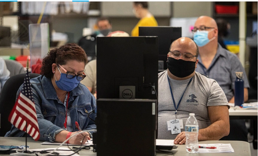 Các nhân viên kiểm phiếu ở Phoenix ngày 5/11/2020. Ảnh: New York Times.