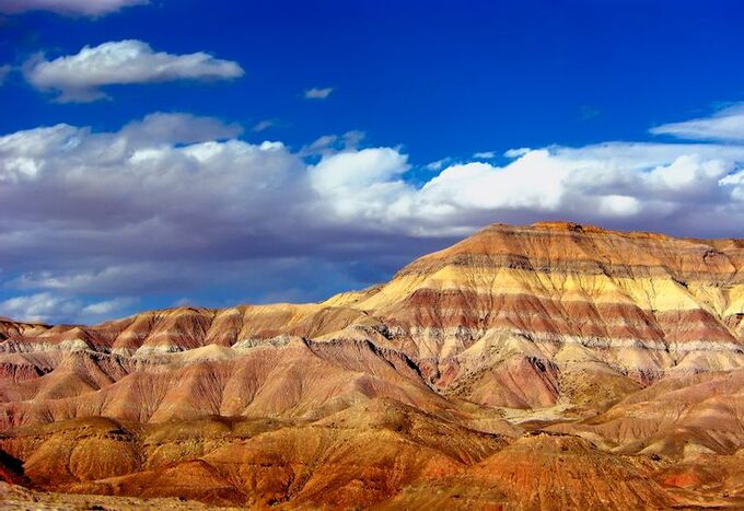 Sa mạc được đặt tên là "Painted", nghĩa là "được sơn", do có đủ màu sắc gồm tím, đỏ, cam, xanh lam, vàng nhờ số lượng khoáng chất được tìm thấy trên địa hình. Nó rộng gần 40.000 ha, trải dài từ thung lũng Grand Canyon đến Vườn quốc gia rừng hóa đá. Ảnh: Flickr