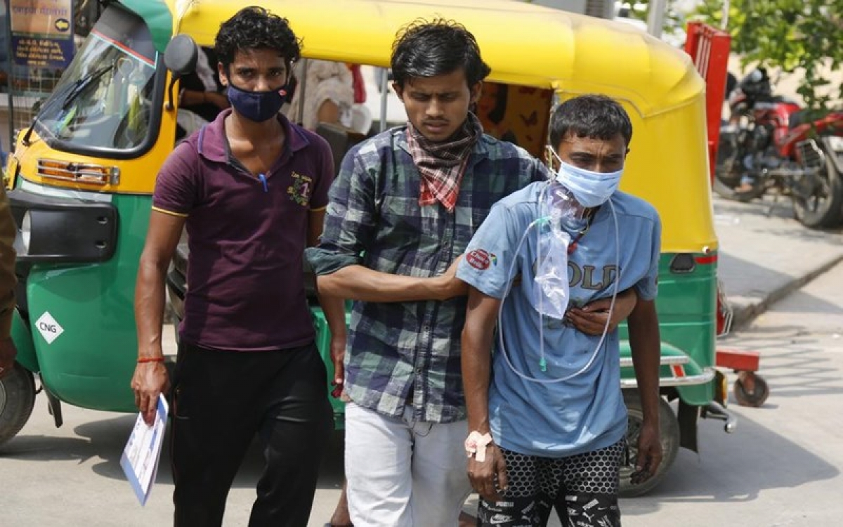 Người mắc Covid-19 được người thân đưa tới bệnh viện tại thành phố Ahmedabad, Ấn Độ, để điều trị. (Ảnh: AP).