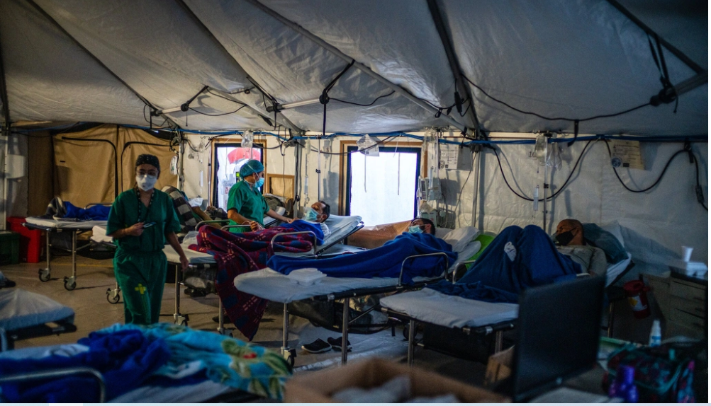 Nhiều bệnh nhân ở Combodia bị buộc phải nằm trong lều dựng tạm ngoài bệnh viện. Ảnh: New York Times.