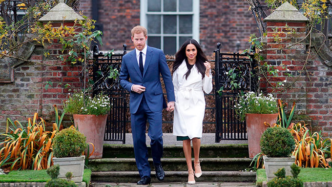 Harry và Meghan trong khuôn viên Điện Kengsington khi công bố đính hôn hồi tháng 11/2017. Ảnh: PA.